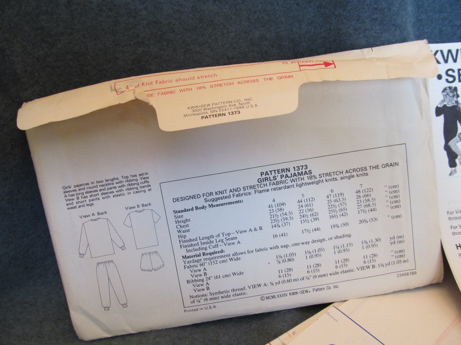 Kwik Sew Pattern 1373 Mulit Sized Pattern For Girls Pajamas Etsy